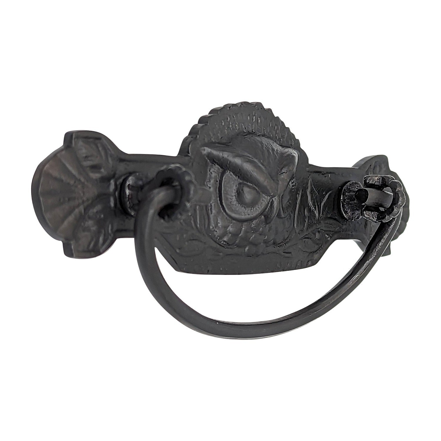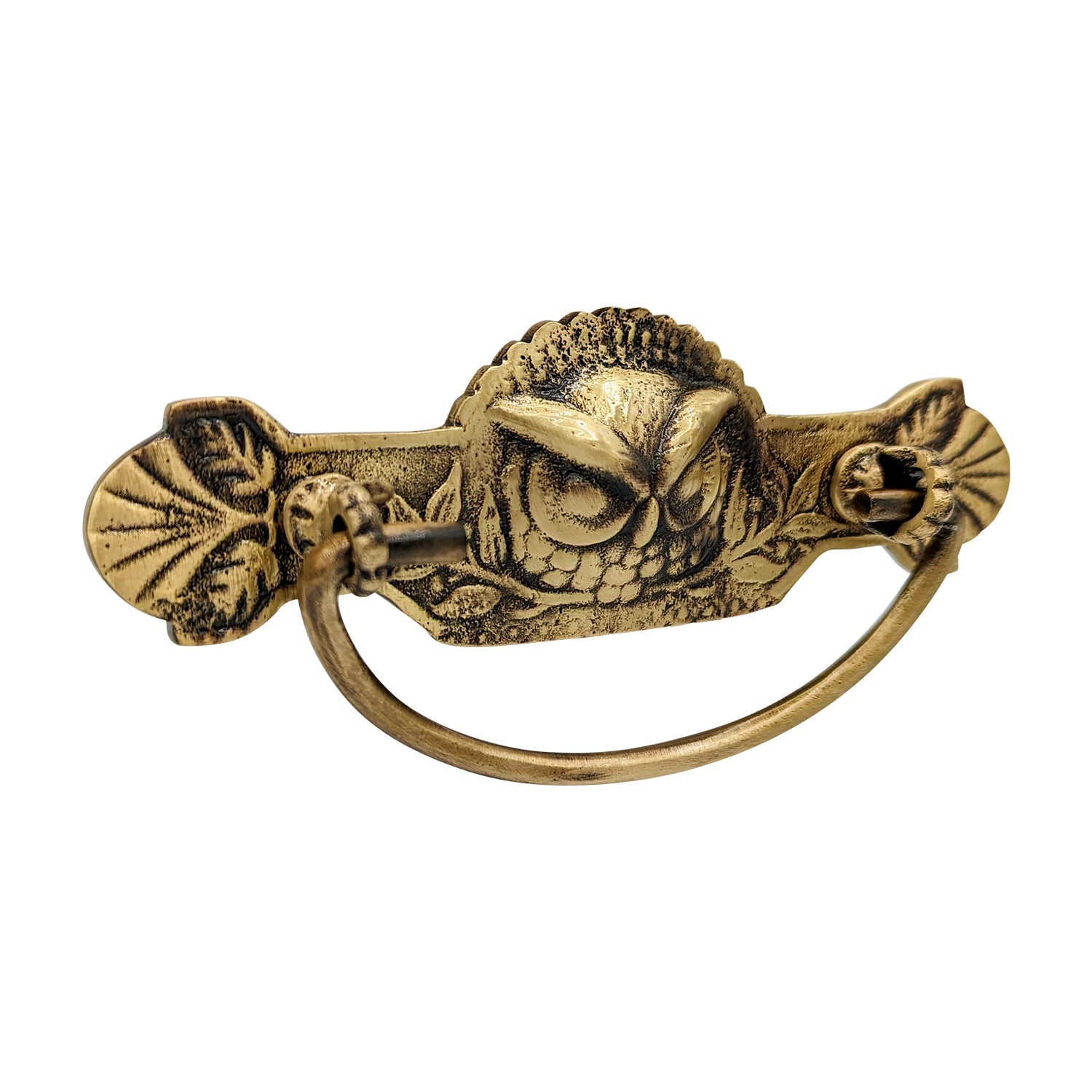 This beautiful bail pull will add a touch of whimsy and class with its stately Art Deco or Victorian design. This piece measures 5 inches at its widest and 1 5/8 inches tall at its base. It has a center-to-center mounting of 3.00 inches and a projection of 2 inches. It's available in several different finishes and comes complete with mounting hardware. Each of these pulls are hand made.