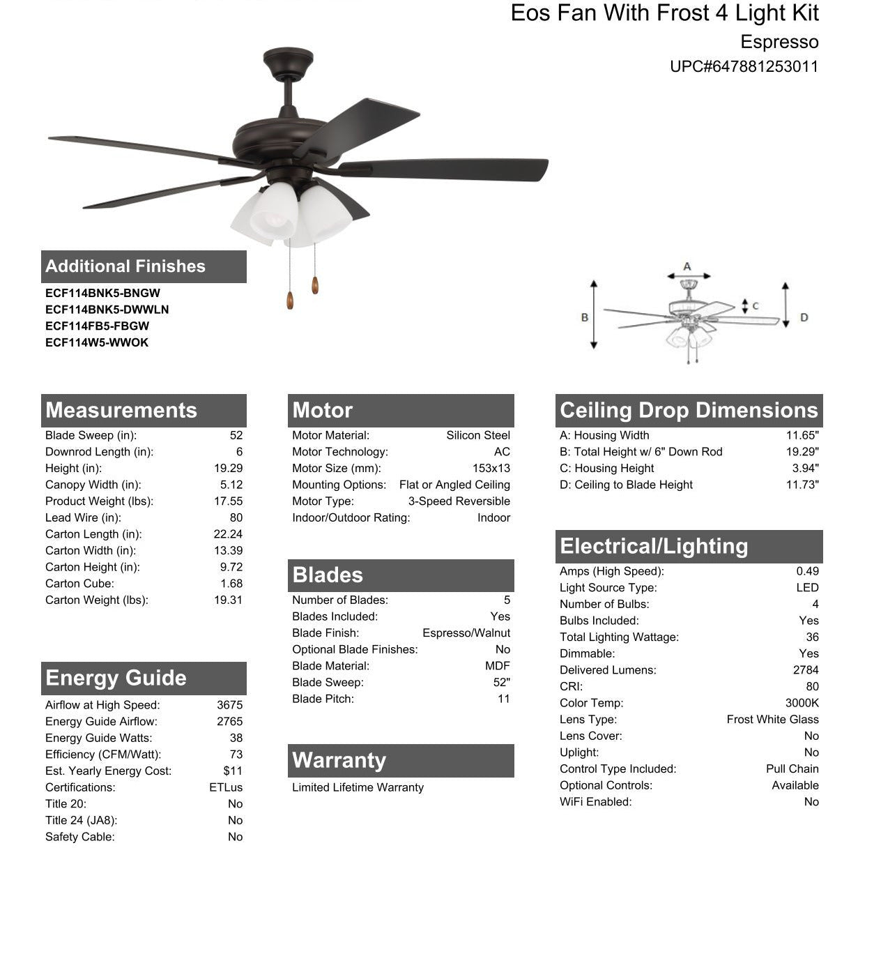 52" Eos Frost 4 Light in Espresso w/ Espresso/Walnut Blades