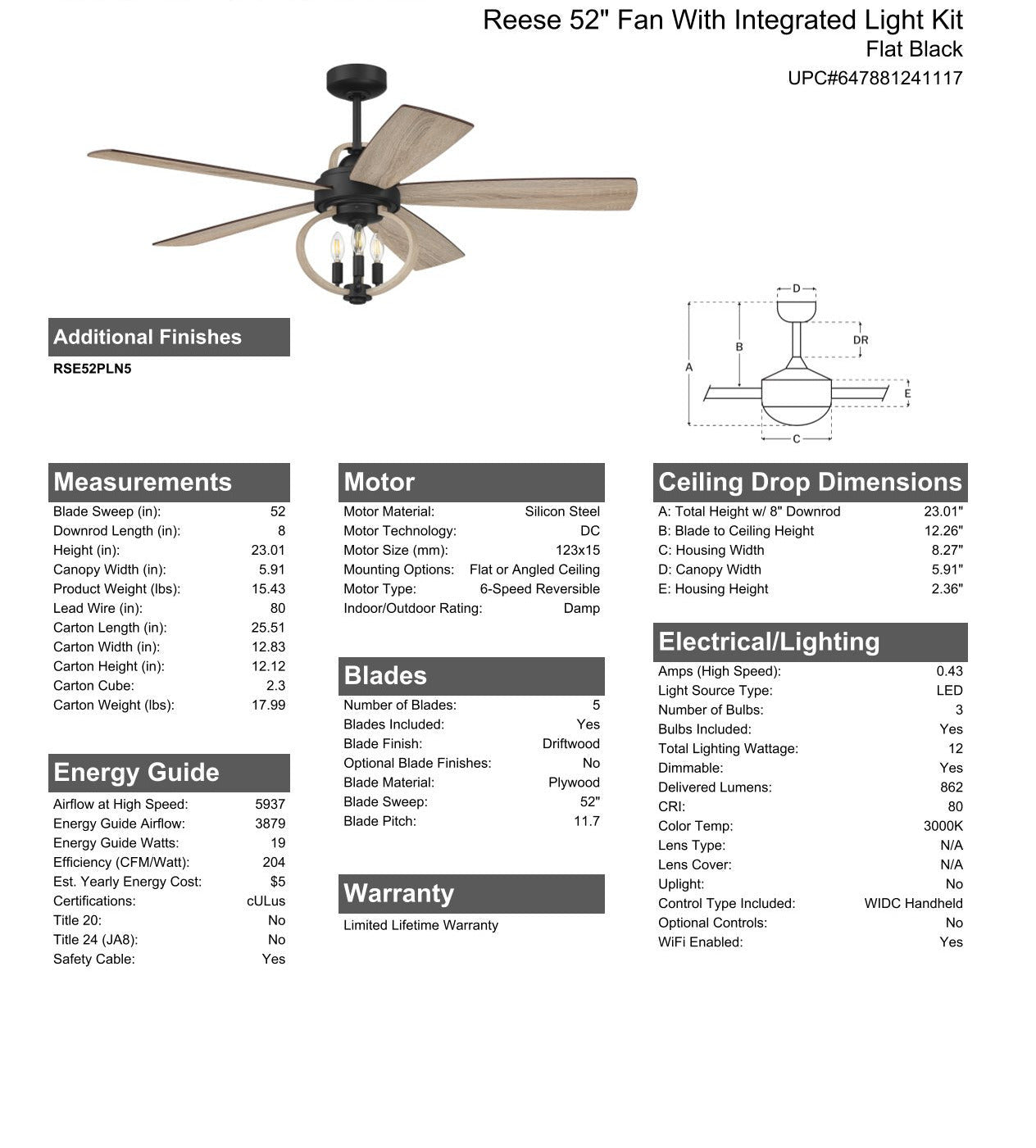 • Energy Guide 3879 CFM, High Speed 5937 CFM