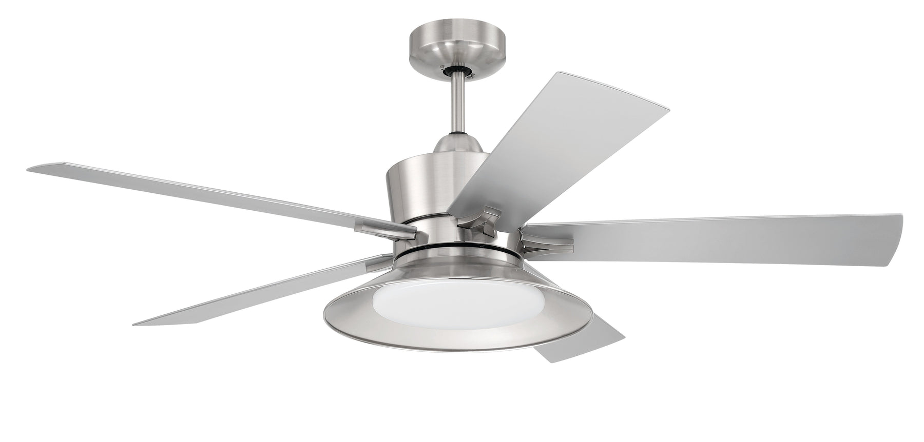 The Craftmade Topper 52" ceiling fan features a protected integrated dimmable 20W 3000K - 5000K adjustable LED light with optional lens cover, 5 custom polycarbonate blades, a quiet energy-saving 6-speed, reversible DC motor, and is easily controlled with either the included remote control or the integrated WIFI featuring breeze and timer functions compatible for use with most smart home devices, smart phones and systems with no additional hub needed. Available in two finishes, the Brushed Polished Nickel is indoor rated only. The Flat Black is indoor/outdoor wet rated.