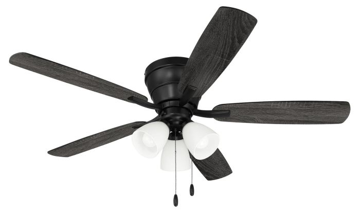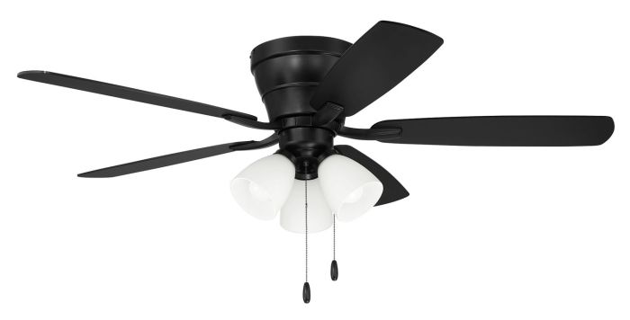 The Wheeler 52" indoor flushmount three light ceiling fan by Craftmade combines classic style with low ceiling compatibility. Featuring custom reversible blades, this efficient pull chain controlled, 3-speed, reversible motor with included optional three light kit with 3 x 9W dimmable LED bulbs included.
