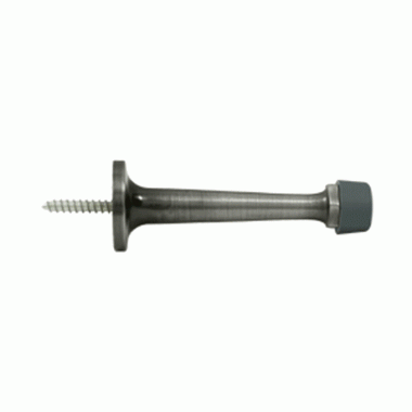 3 1/4 Inch Solid Brass Baseboard Door Bumper (Antique Nickel Finish) - measures 3 1/4 inches long and comes with 2 rubber tips. This style of door stop provides protection for the door by preventing it from banging against a wall causing damage to drywall or plaster and paint. This door stop is available in many designer finishes and comes complete with the mounting hardware.