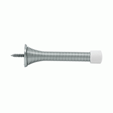 3 Inch Solid Steel Baseboard Door Bumper (Polished Chrome Finish) - measures 3 inches long. This style of door stop provides protection for the door by preventing it from banging against a wall causing damage to drywall or plaster and paint. This door stop is available in many designer finishes and comes complete with the mounting hardware.