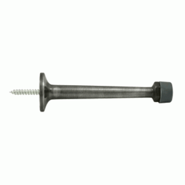 4 Inch Solid Brass Baseboard Door Bumper (Antique Nickel Finish) - measures 4 inches long and comes with 2 rubber tips. This style of door stop provides protection for the door by preventing it from banging against a wall causing damage to drywall or plaster and paint. This door stop is available in many designer finishes and comes complete with the mounting hardware.