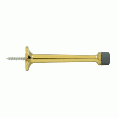 4 Inch Solid Brass Baseboard Door Bumper (Polished Brass Finish) - measures 4 inches long and comes with 2 rubber tips. This style of door stop provides protection for the door by preventing it from banging against a wall causing damage to drywall or plaster and paint. This door stop is available in many designer finishes and comes complete with the mounting hardware.