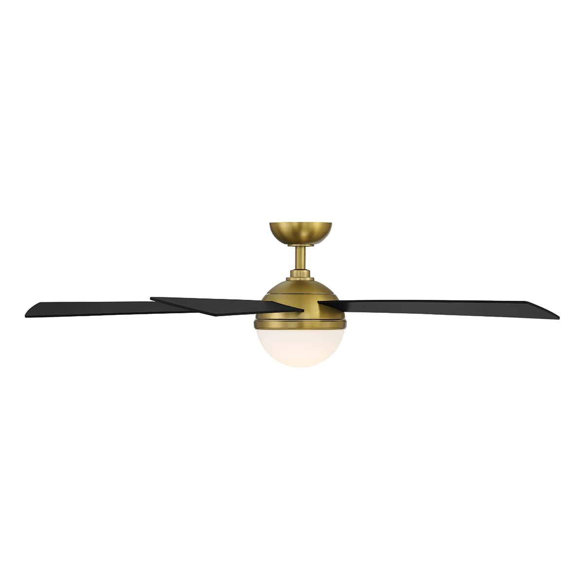Eclipse Indoor or Outdoor 5-Blade 54in Smart Ceiling Fan in Soft Brass Matte Black with 3000K LED Light Kit and Remote Control This smart fan eclipses conventional ceiling fans in more ways than one. Eclipse integrates functionality, innovation, advanced technology and a stylish aesthetic that is visually compelling. Three architectural finishes include Brushed Nickel with Titanium, and Matte White and Satin Brass combinations, as well as a Satin Brass and Matte Black combo. A convenient remote control comes included with this model. WAC Smart Fans can be controlled from the WAC Smart Fan app, enabling smart features and full control of your fan from an iOS or Android device. Download the app to pair with the smart home tech you know and love, including Google Assistant, Amazon Alexa, Samsung Smart Things, Ecobee, Control4, and Josh AI. Coming Soon: Savant, Lutron Homeworks, and Nest. The WAC Smart Fan iOS or Android app can sync with your ceiling fan to control fan speed, use smart features like breeze mode, adaptive learning, create groups, and reduce energy costs. Battery operated Bluetooth remote control with wall cradle included (Part # RC20-WT). Optional Bluetooth hardwired wall control sold separately (Part# WC20-WT). Controls are Bluetooth compatible for improved range and an unlimited amount of fans can be control with remote or wall control within range. WAC Smart Fans are made with incredibly efficient and completely silent DC motors and are up to 70% more efficient than traditional fans. Every fan is factory-balanced and sound tested to ensure each fan will never wobble, rattle or click. Features an energy efficient replaceable LED light kit with up to 1600 lumens and 90CRI in a 3000K color temperature. LED light kit can be dimmed smooth and continuously. Standards: UL & cUL Damp Location Listed for indoor or outdoor applications. Energy Star Certified for energy efficiency. Can be installed on slope ceilings up to a 30 degree slope (SKU SC-FINISH Slope Ceiling Kit available for 30-45 degrees). Includes a 6in Downrod. Additional downrod lengths sold separately (SKU DR-FINISH).