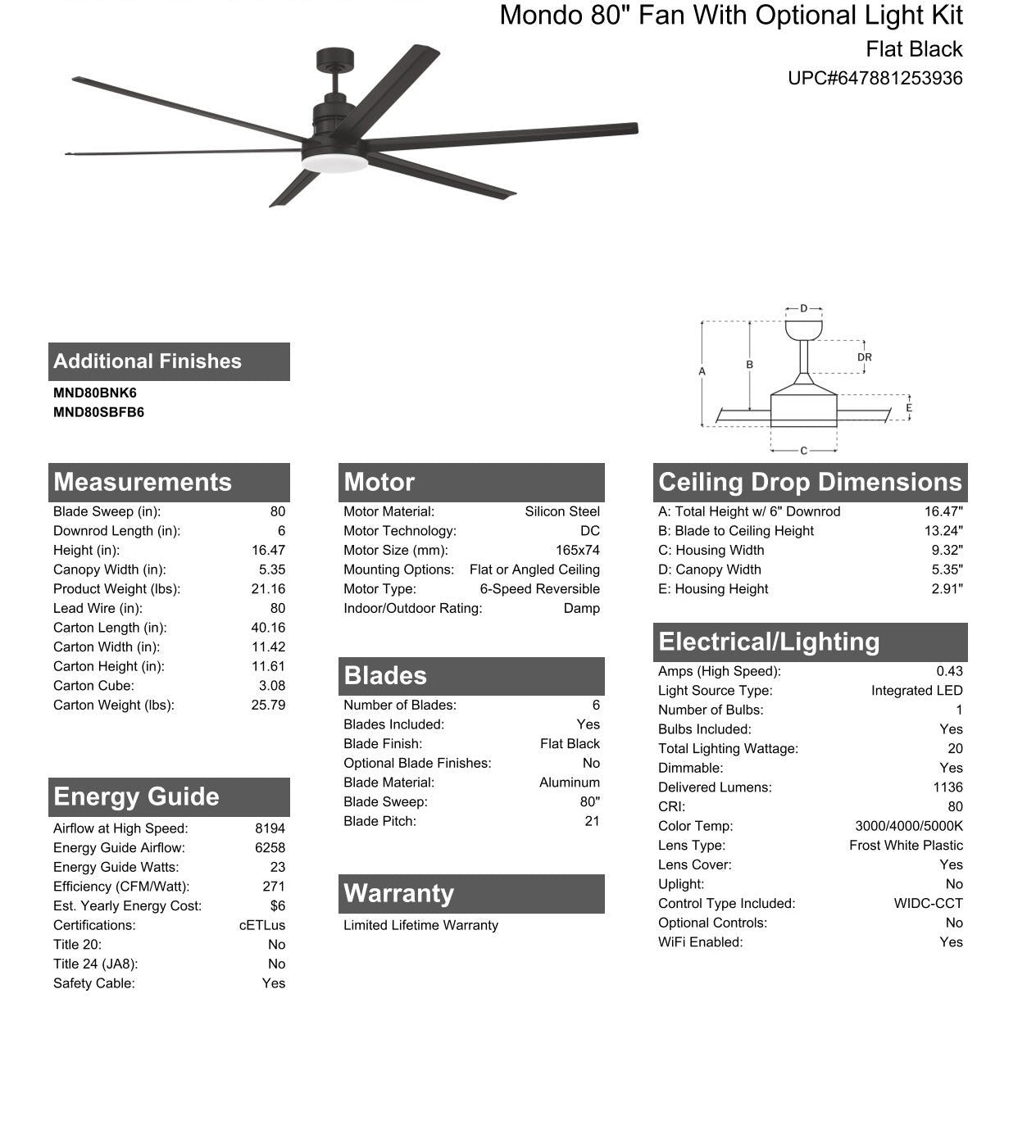 Blade Sweep Opt (in.) 80
