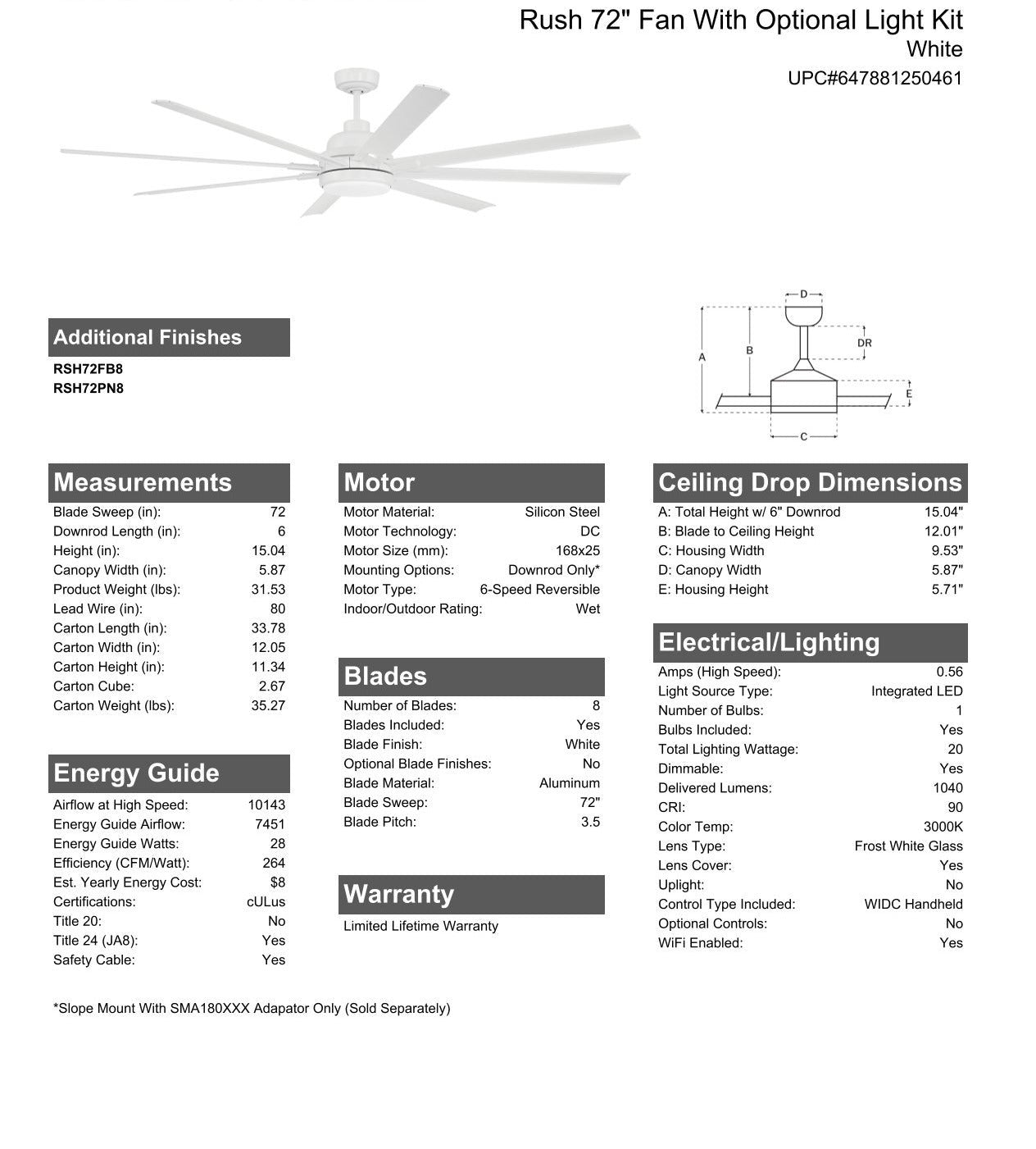 Blade Sweep Opt (in.) 72