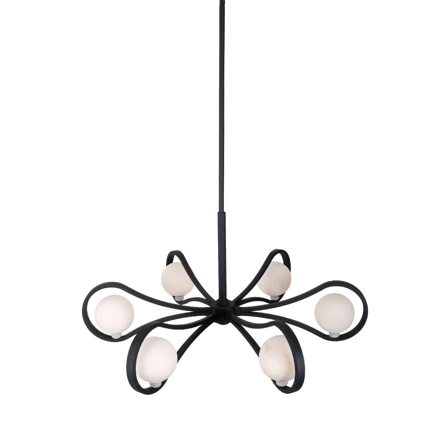 Explore the timeless elegance of Elliptical. Crafted with natural Alabaster stone and clean flowing lines. The balanced globes create a touch of intrigue. A Matte Black finish adds a dash of distinction with looping forms that naturally draw your eyes in. When lit, the balanced orbs cast a relaxed yet captivating glow.