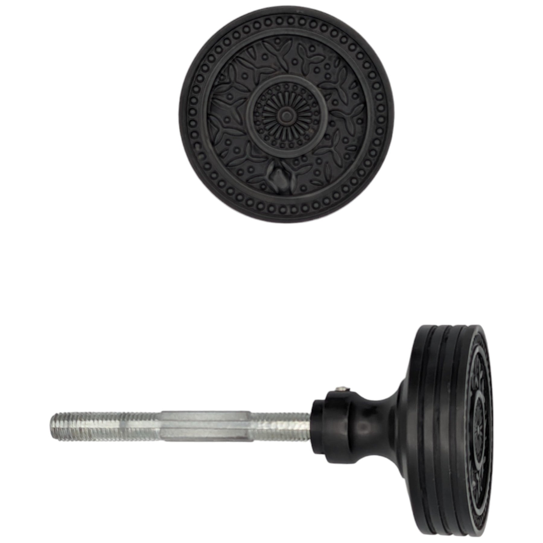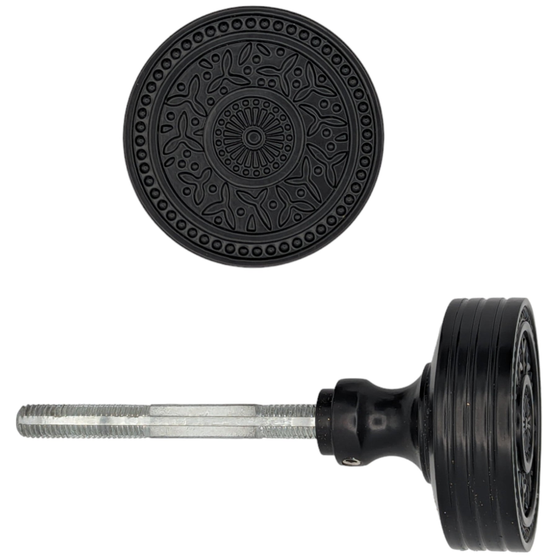 Each knob has a diameter of approximately 2 1/4 inches. The spare door knob set includes two knobs and a passage spindle.