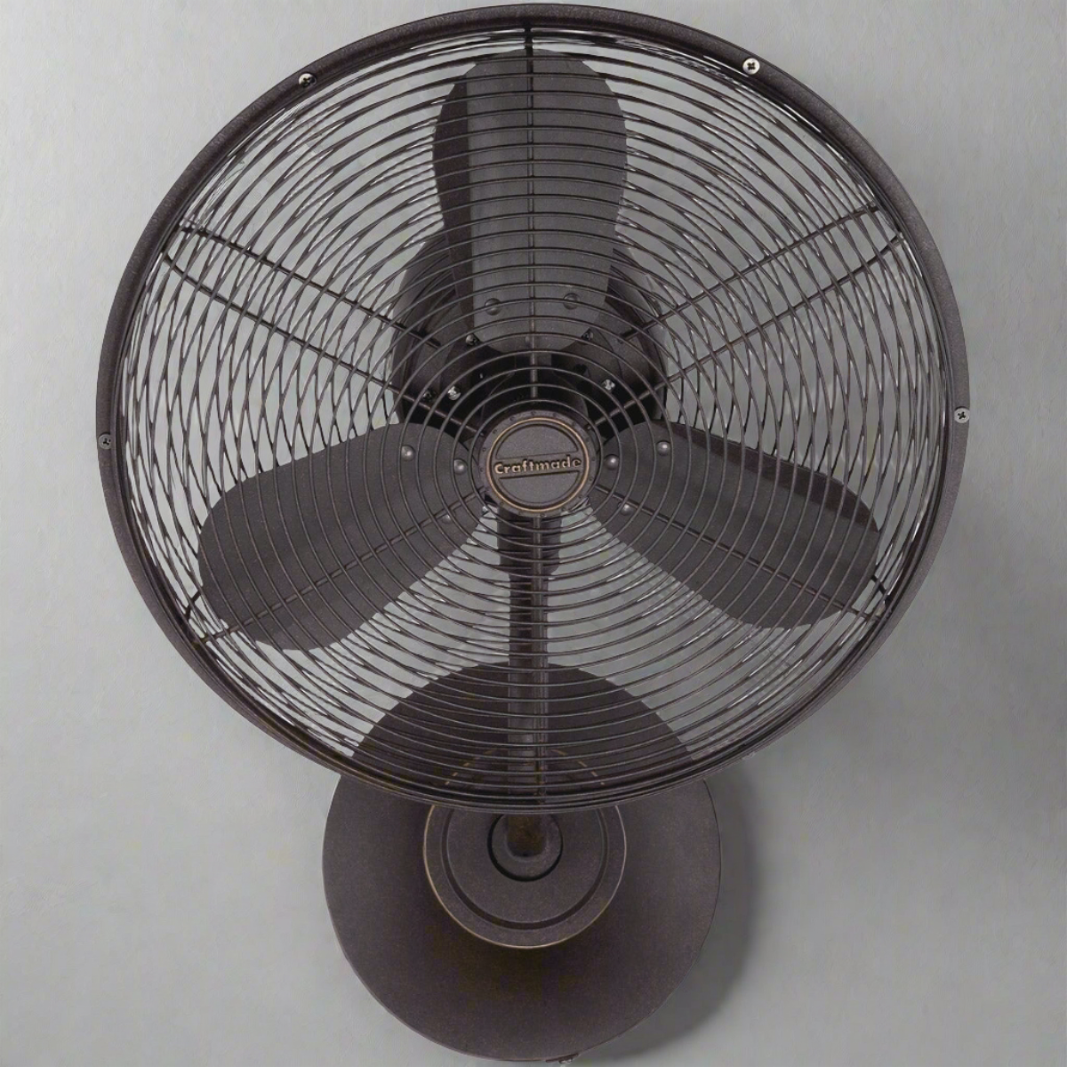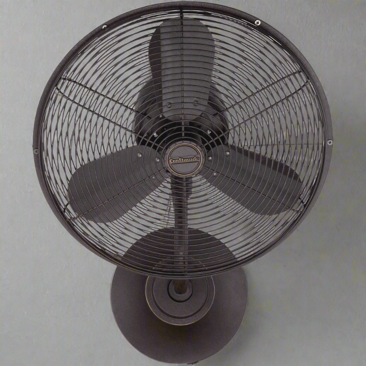 With a heavy-duty, 3-speed oscillating motor and 14" blades, this wall-mounted fan combines the retro style of a table fan with the power and efficiency of a ceiling fan. Finished in your choice of outdoor damp rated flat black or aged bronze textured or indoor rated brushed polished nickel, it includes a wall control with 3-speed and oscillating functions.